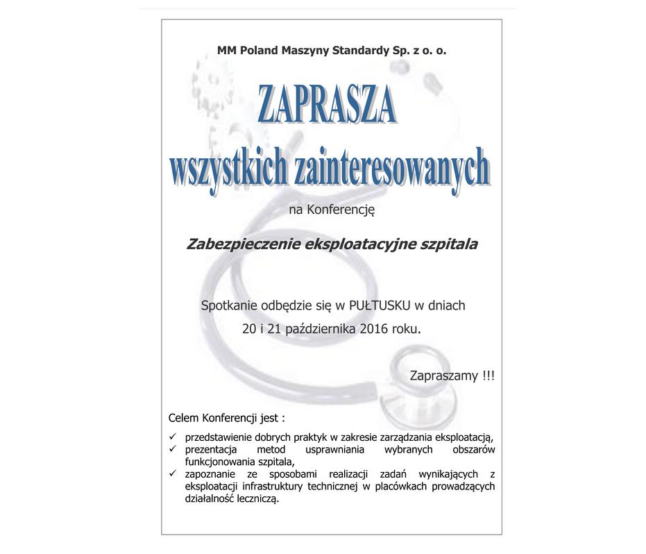MM Poland Maszyny Standardy jest współorganizatorem konferencji Zabezpieczenie Eksploatacyjne Szpitala, która odbędzie się w Pułtusku w dniach 20-21 października 2016 roku.