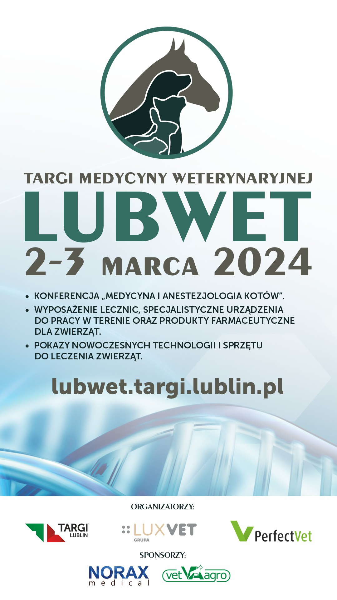 Jesteś weterynarzem, technikiem weterynarii lub prowadzisz przychodnię dla zwierząt? Chcesz być na bieżąco z najnowszymi rozwiązaniami stosowanymi w leczeniu zwierząt? Odwiedź pierwsze na Lubelszczyźnie Targi Medycyny Weterynaryjnej LUBWET, które odbędą się w dniach 2-3 marca 2024 roku w Targach Lublin przy ul. Dworcowej 11 w Lublinie.