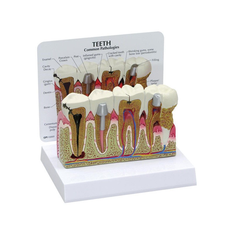 1019539 to powiększony model zębów, w tym przedtrzonowców i trzonowców z wieloma popularnymi problemami stomatologicznymi takimi jak: