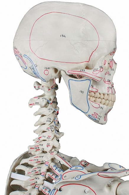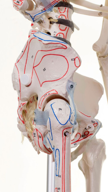 Szkielet człowieka MAX naturalnych wymiarów przedstawia wszystkie anatomiczne detale: szczeliny, otwory, wyrostki. Model z elastycznym kręgosłupem, ale także więzadłami i przyczepami mięśniowymi.