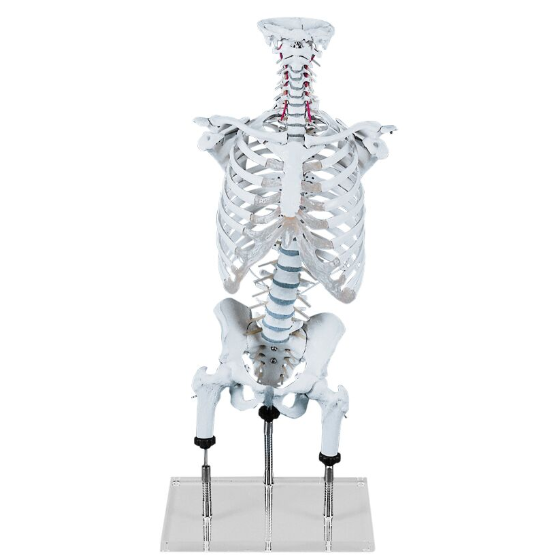 Kręgosłup do demonstracji wad postawy zaprojektowany m.in. dla fizjoterapeutów, masażystów, ortopedów. Model imituje ruchy udowe w stawie biodrowym. Kość udowa może być uniesiona lub obniżona, przez co dzięki skróceniu nogi widoczny jest wpływ na pochylenie miednicy i dalsza zależność do kręgosłupa. Model dedykowany jest dla fizjoterapeutów, do nauki masażu jak również w ortopedii.