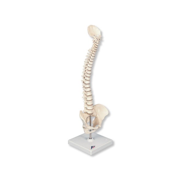Model kręgosłupa z łuską potyliczną i miednicą. Model jest na demontowalnej podstawie.