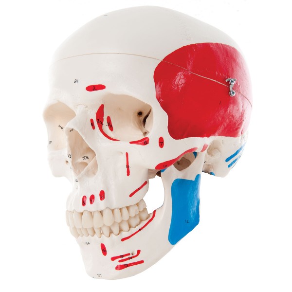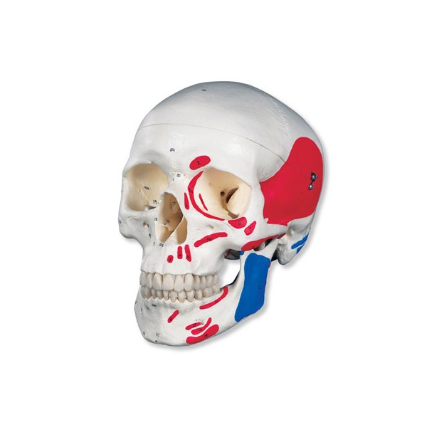 Opis produktu: Czaszka z malowanymi przyczepami mięśni i numeracją kości
