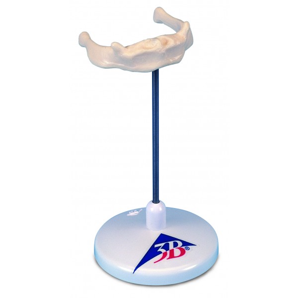 Kość gnykowa umieszczony na podstawce odwzorowuje kość gnykową człowieka. Model wykorzystywany do badania szczegółów anatomicznych.