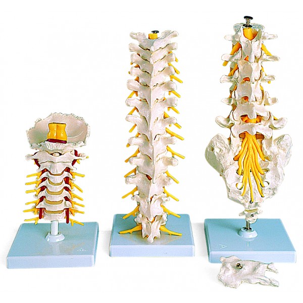 Część piersiowa kręgosłupa przedstawia 12 kręgów piersiowych połączonych z krążkami międzykręgowymi, nerwami rdzeniowymi i rdzeniem kręgowym w naturalnej pozycji