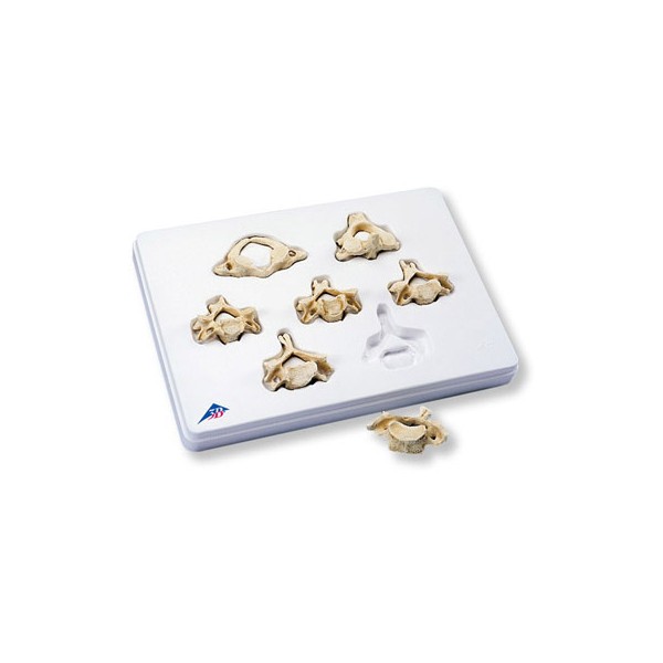 Zestaw 7 kręgów szyjnych jest doskonałym narzędziem dydaktycznym pomocnym podczas lekcji jak i wykładów. Przedstawione zostały wszelkie szczegóły budowy anatomicznej. Model ma wagę prawdziwych kręgów.