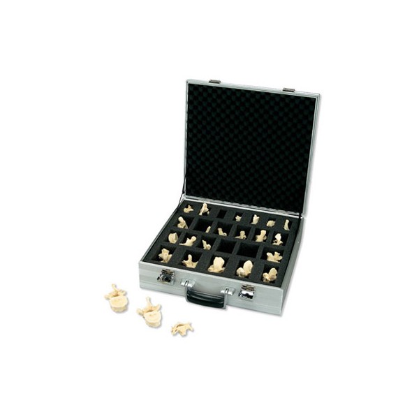 Zestaw aż 24 kręgów został umieszczony w zamykanym pojemniku/walizce z przegródkami na poszczególne kręgi:7 kręgów szyjnych, 12 piersiowych, 5 lędźwiowych.