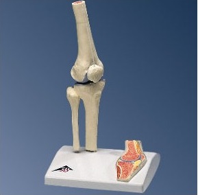 Model stawu kolanowego został zmniejszony do połowy wymiarów naturalnych, jednakże zachował wszystkie cechy większego modelu. Posiada on wszystkie zewnętrzne cechy anatomiczne budowy kostnej, oraz dodatkowo na podstawie znajduje się model stawu kolanowego w przekroju.
