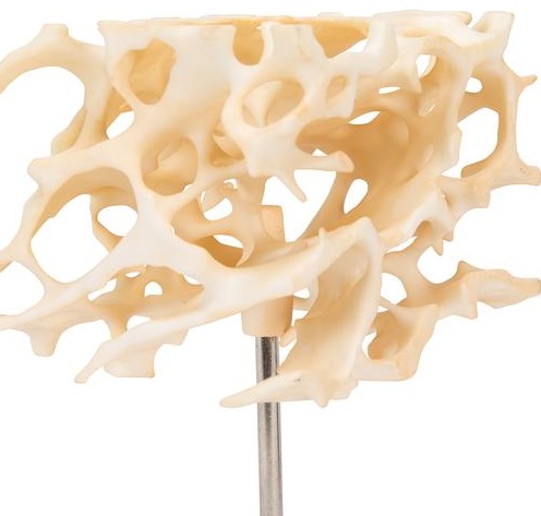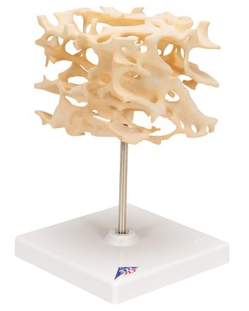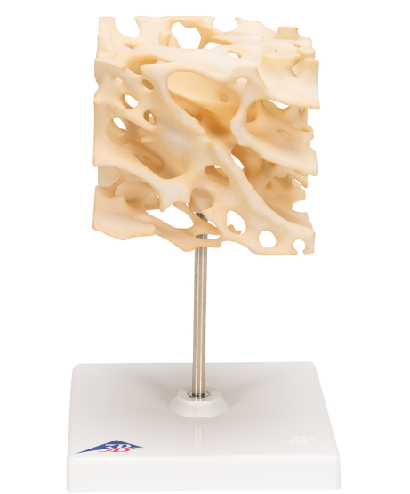 Kość gąbczasta to wyjątkowy model dzięki któremu poznasz wewnętrzną cześć kości. Dzięki nowoczesnej technologii mikrotomografi komputerowej udało się zrekonstruować dokładną 3-wymiarowy kopię kawałka kości gąbczastej w powiększeniu 100 razy.