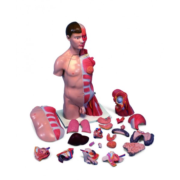 Dwupłciowy tors mięśniowy to 33 – częściowy, męsko-żeński model torsu z przedstawioną strukturą mięśniową oraz ramieniem.