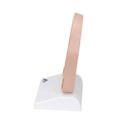Model przekroju głowy przez zatoki to niezwykle szczegółowy model dostarczany na podstawie. Replika przekroju głowy przez zatoki przynosowe przedstawia oznaki zapalenia zatok (zapalenie zatoki przynosowej) z prawej strony, natomiast lewa strona przedstawia zdrowe i drożne zatoki.