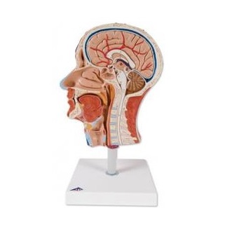 Model połowy głowy z umięśnieniem dostarczany jest ze statywem, umożliwiającym łatwe prezentowanie go w klasie lub gabinecie lekarskim. Wszystkie istotne struktury anatomiczne zostały przedstawione.
