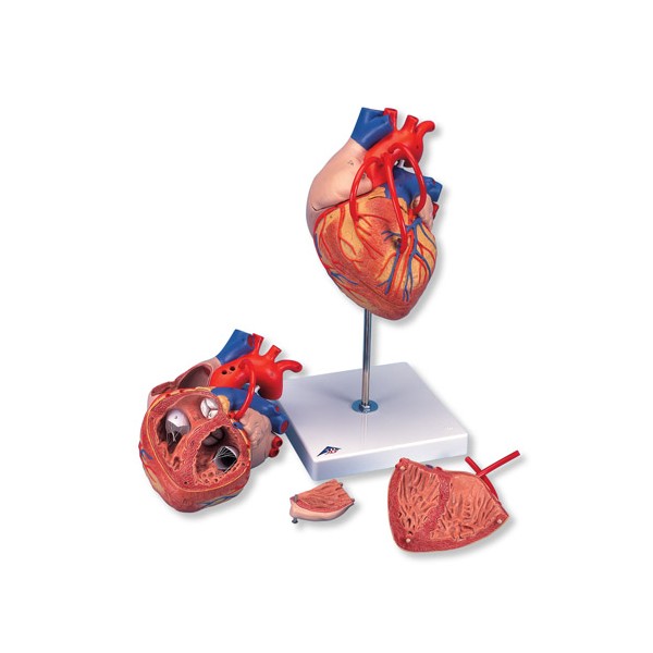 Model serca składający się z 4-części jest dwa razy większy od serca naturalnej wielkości. Przód modelu może być usunięty w celu lepszej prezentacji wewnętrznych komór serca.