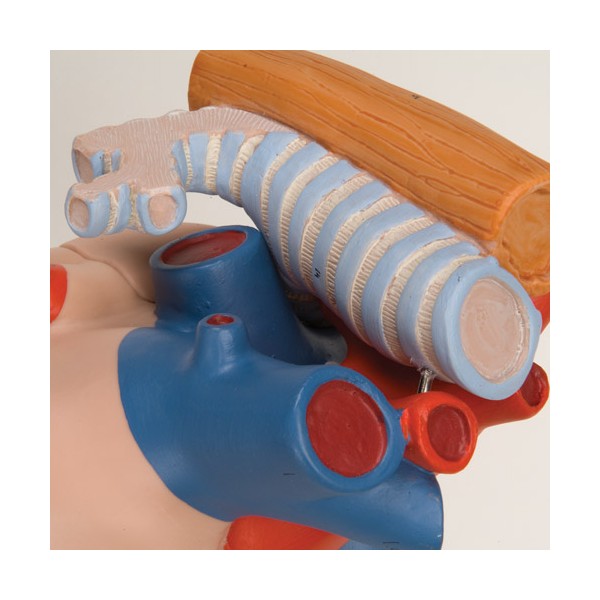 Model serca z przełykiem i tchawicą, dwa razy większy od serca naturalnej wielkości.