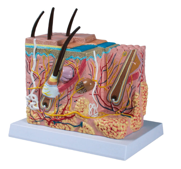 Blokowy model skóry człowieka w około 50-krotnym powiększeniu na podstawie.