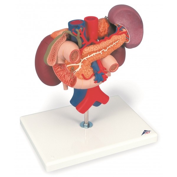 Niesamowity model nerki z tylnymi organami górnego brzucha to połączenie modeli K22/1 oraz K22/2 przedstawiających anatomię układu moczowego i pokarmowego człowieka.