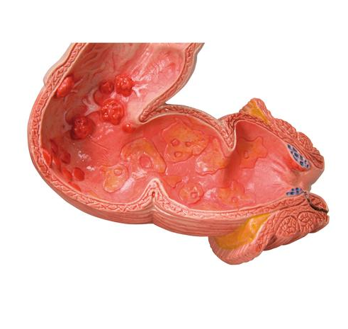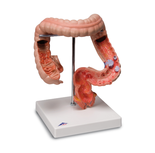 Jelita ze zmianami chorobowymi to model który pokazuje najczęściej występujące łagodne i złośliwe zmiany chorobowe, np. rak jelita i jego różne fazy.