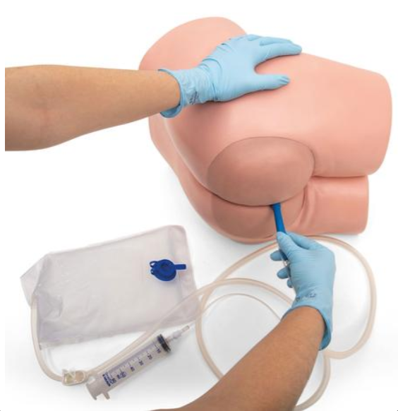 Trenażer do pielęgnacji jelita i lewatywy umożliwia ćwiczenie lewatywy, aplikacji czopków, podawania leków badania per-rectum. Naturalnych wymiarów symulator, umożliwia trening oraz doskonalenie umiejętności.