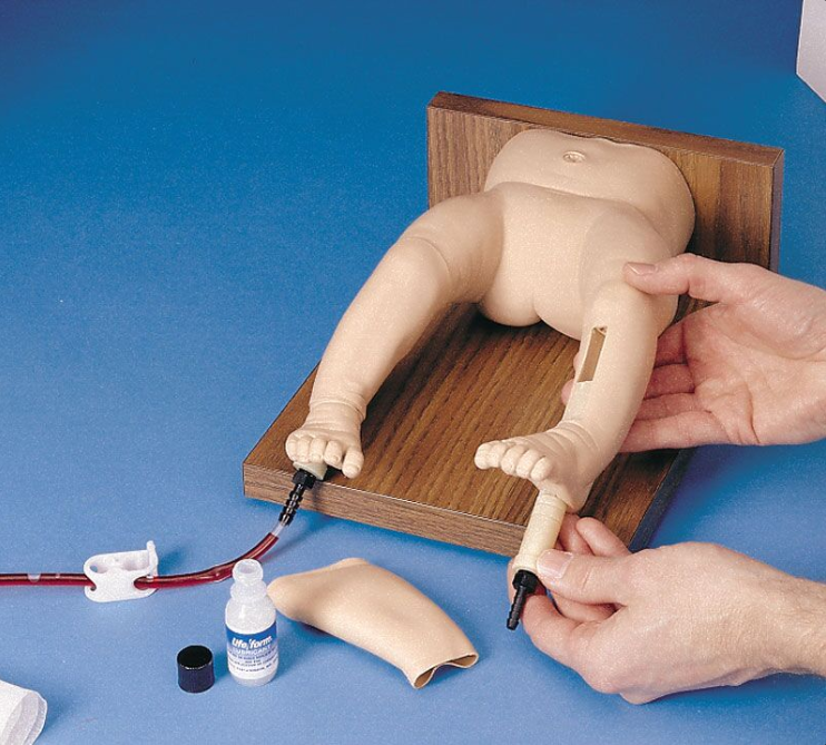Bardzo realistyczny fantom niemowlęcia do iniekcji doszpikowych. Po prawidłowym wkłuciu możliwość aspiracji krwi. Noga posiada wyraźne anatomiczne punkty orientacyjne, wymienialne kości i skórę.