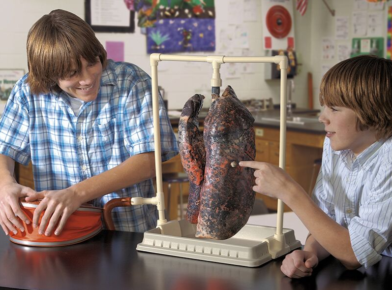 Płuca zabarwione w taki sposób, że do złudzenia przypominały płuca osoby palącej. Zamocowane na ramie i mogą być napełniane powietrzem przy pomocy specjalnej pompy. Model przypomina anatomię człowieka palącego i pokazuje jak działają płuca. Zestaw zawiera przekrój pokazującym strukturę wewnętrzną płuc.