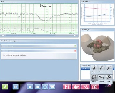 Symulator porodowy SIMone (TM) to model żeńskiego brzucha z punktami orientacyjnymi w postaci sromu i kolca kulszowego. Wewnątrz modelu ulokowana jest główka płodu (ze szwem strzałkowym i ciemiączkiem dla określenia jego pozycji). 19-calowy monitor, z łatwym w użyciu ekranem dotykowym, wyświetla dokładny obraz pozycji i obrotu główki w miednicy matki. Kardiotokografia i partogram pozwalają na ocenę postępów i wskazują na ewentualną potrzebę interwencji w postaci amniotomii lub podania leków. Korzystając z załączonej aplikacji możliwy jest wybór różnorodnych scenariuszy porodu, a mechanizm odtwarzania pozwala na jego powtórne prześledzenie i omówienie popełnionych błędów.