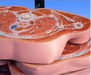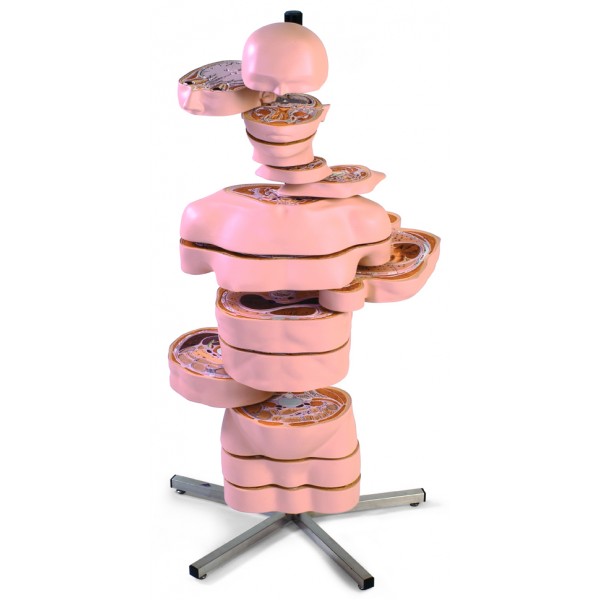Fantastyczny model przedstawiający budowę anatomiczną człowieka w 15 różnych przekrojach poprzecznych. Poszczególne struktury anatomiczne wyróżnione są kolorami.