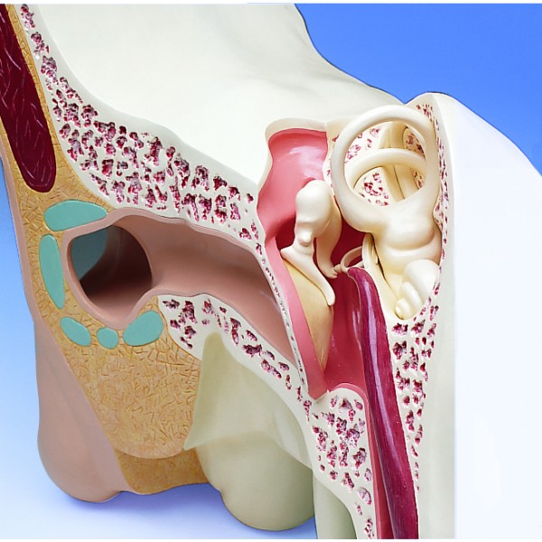 3-częściowy, aż 15-krotnie powiększony, największy na świecie model ucha. Zamontowany na podstawie.