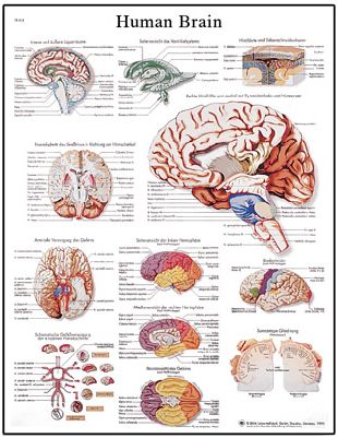 Kolorowa plansza przedstawiająca obrazy mózgu – różne przekroje i ujęcia. Opisy w j.angielskim. Dzięki grubemu pokryciu laminatem, plansza nie roluje się, ani nie traci kolorów w miarę upływu czasu. Dostępne w dwóch wersjach: laminat lub papier.