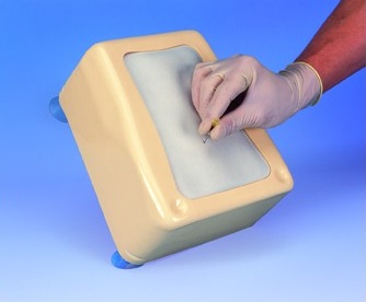 Trenażer iniekcji stwarza wyczuwalny delikatny opór przed przekłuciem opony twardej, informuje o zbyt głębokim wprowadzeniu igły.