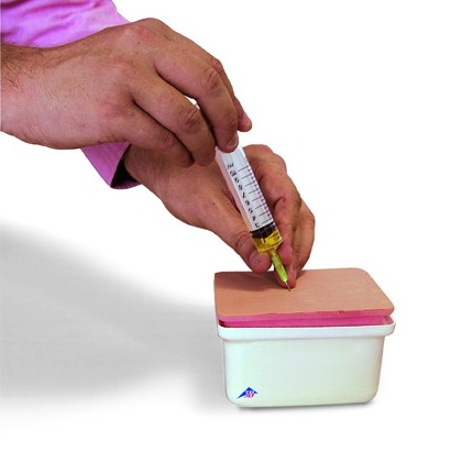 Poduszka do iniekcji domięśniowych imityjąca tkankę mięśniową. Możliwość iniekcji na mokro.