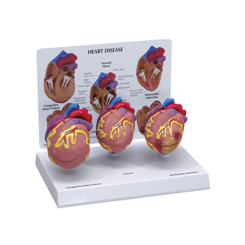 W33365 to zestaw składający się z 3 mini modeli modeli serca. Każdy z modeli prezentuje cechy charakterystyczne dla następujących stanów: