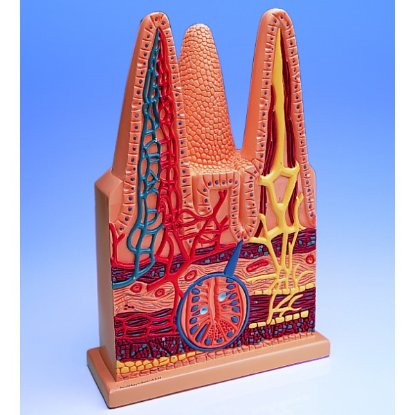 Kosmki jelitowe Model kosmków jelitowych składa się z całych kosmków, na których w przekroju wzdłużnym widoczne są tętniczki i żyłki oraz naczynia limfatyczne. Na przekroju widoczne są także w powiększeniu Krypty Lieberkuhna.