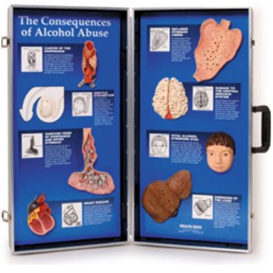 Model przedstawia skutki nadużywania alkoholu na naturalnej wielkości narządach ciała. Każdy model zamontowany na stałe w walizce zawiera szczegółowy komunikat z przesłaniem o istocie dbania o własny stan zdrowia. Model idealnie nadaje się m.in. do szkół oraz szpitali. Wersja dostępna w j.angielskim.