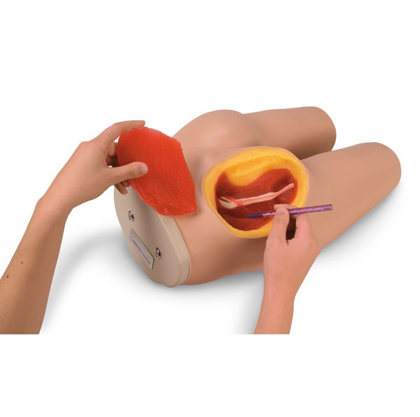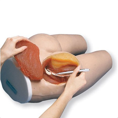 Prezentowany produkt posiada topograficzne punkty kostne. Są to krętarz większy kości udowej, kolec biodrowy przedni górny i tylny górny, a także kość krzyżową. Do wyboru właściwego miejsca wykonywania iniekcji punkty te można zidentyfikować palpacyjnie. Wyjęcie górnego zewnętrznego kwadratu lewego pośladka umożliwia obserwację struktur wewnętrznych. Taki jak mięsień pośladkowy wielki, średni, nerw kulszowy, układ naczyniowy pośladka. Ponadto model umożliwia trening trzech rodzajów iniekcji domięśniowych: środkowo pośladkowy, bocznego mięśnia obszernego, brzuszno pośladkowe.