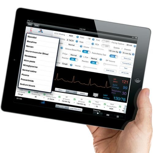 Wchodzący w skład zestawu I-pad umożliwia sterowanie funkcjami symulatora, a także analizę i ocenę parametrów przeprowadzanych czynności