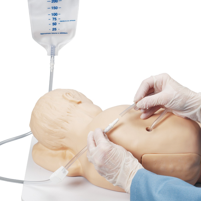 Niemowlęta często wymagają nakłuć lędźwiowych jako procedury diagnostycznej używanej do pobrania próbki płynu mózgowo-rdzeniowego (CSF), zmierzenia ciśnienia płynu mózgowo-rdzeniowego lub podania lekarstw dooponowo. Zbudowany jak grzebień biodrowy oferuje wyjątkowy realizm, podczas gdy wymienny kręgosłup, kanał kręgosłupa, i podkładki skórne sprawiają, że trening jest prosty i bezproblemowy. Nakłucie lędźwiowe może być wykonywane w miejscach pomiędzy kręgami L3-L4, L4-L5, lub L5-S1. Prawidłowe miejsce wkłucia może być zlokalizowane poprzez wyczucie pod palcami grzebienia biodrowego oraz kręgosłupa. Niewielkie “poddanie” będzie odczuwalne, gdy igła do wkłucia lędźwiowego będzie powoli przesuwać się w odpowiednie miejsce. Płyn zacznie wypływać, gdy igła znajdzie się w prawidłowej pozycji. Studenci docenią możliwość ćwiczenia tej delikatnej, ale powszechnie wykonywanej procedury na symulatorze, który jest zarówno realistyczny, jak i dokładnie odwzorowany anatomicznie.