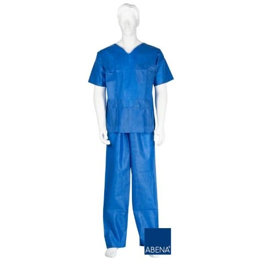 210424 - Ubranie operacyjne Classic, SMS 40 g/m2, antystatyczne, dekolt V obszyty, 3 kieszenie, spodnie z paskiem, niebieskie, rozm. XL