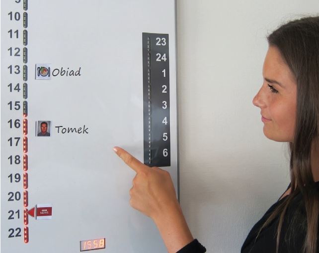 MEMOdayplanner to świetlno-magnetyczna tablica, która w sposób prosty i konkretny pokazuje czas oraz zaplanowane zajęcia i obowiązki. Na tablicy znajdują się dwie różnokolorowe kolumny świetlne, co pozwala w łatwy sposób zrozumieć pacjentowi porę dnia (dzień/noc). Dodatkowo, kolumny świetlne w sposób przejrzysty pokazują aktualną godzinę. Istnieje możliwość ustawienia kolumn w taki sposób, aby kolejne lampki wyłączały się co 15 minut, lub jako pojedynczego pasa świetlnego, przesuwającego się w dół wraz zupływem czasu.