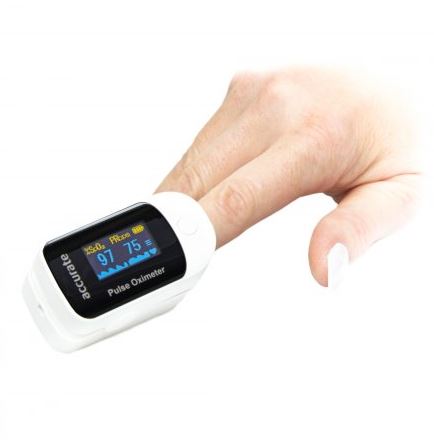 Pulsoksymetr napalcowy Accurate FS20D. Accurate FS20D to urządzenie elektroniczne służące do nieinwazyjnego pomiaru saturacji krwi. W tym celu wykorzystuje metodę pulsoksymetrii – mierzy stopień pochłaniania przez tkanki promieniowania o dwóch różnych długościach fal.