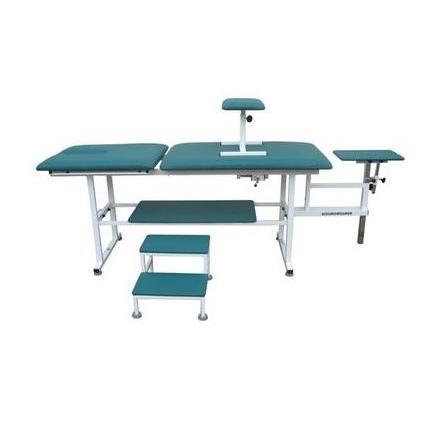 • Stół rehabilitacyjny z uchylnym wezgłowiem przeznaczony jest do kinezyterapii leczniczej oraz trakcji kręgosłupa.