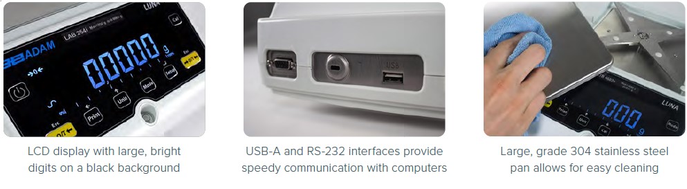Wagi Luna zostały zaprojektowane z szeregiem cech i funkcji, aby dostosować się do większości zastosowań laboratoryjnych. Seria Luna oferuje ulepszoną wydajność dla szybsze i dokładniejsze odczyty. Ze stylowym, nowoczesnym podświetleniem, Imponujący wyświetlacz Luna roztacza aurę inteligentnego wyrafinowania.