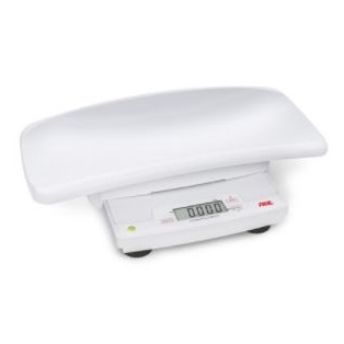 Zdejmowana, miękka, zakrzywiona taca zapewnia wygodną przestrzeń dla niemowląt. Po zdjęciu tacy możliwe jest wazenie małych dzieci w pozycji stojącej.