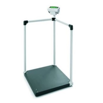 Elektroniczna waga z dużą i przestrzenną platformą do ważenia. Dodatkowo wyposażona jest w poręcze (M301020-01).