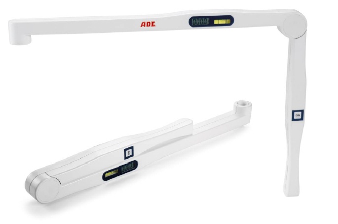 Łatwe użycie i przechowywanie dzięki składanemu mechanizmowi. Pomiar w cm/calach, najdokładniejszy dzięki wbudowanej poziomicy, wskaźnik niskiego poziomu baterii, zasilany baterią 9V. Dane techniczne: zakres pomiaru: 500 - 2500 mm; podziałka: 5 mm; wymiary: 500/340 x 35 mm; waga: ok. 180 g.