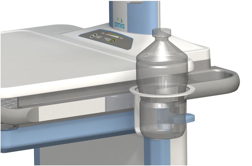 AMiS montowany jest na szynie DIN, wysokość powierzchni roboczej można regulować aż z pozycji siedzącej do pozycji stojącej, także możliwe jest dostosowane urządzenia do warunków pracy, co zapewnia elastyczność dla personelu medycznego.