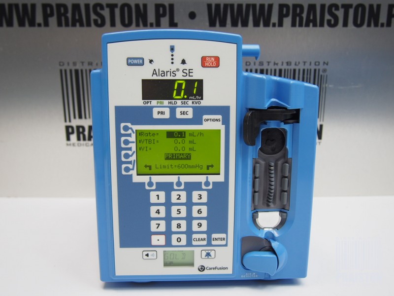 - Alarmy: powietrze w linii, wyczerpane baterie, awaria kanału, błąd łącza komputera, odłączony czujnik przepływu, czas przetrzymania przekroczony, awaria urządzenia, zablokowanie klucza, otwarty zatrzask, nie wykryto przepływu w strumieniu upuszczanym, okluzja w dół, przedostawanie się okluzji, wykryto przepływ pierwotny podczas,