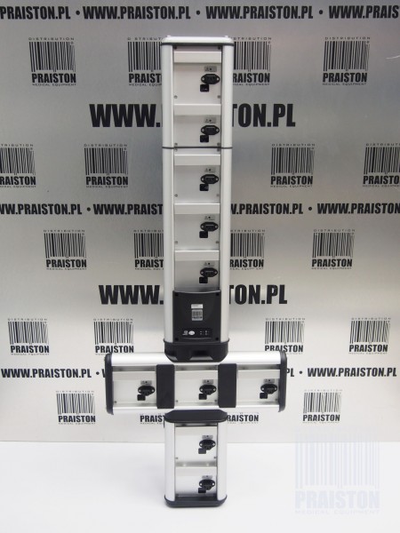 - Stacje Alaris występują w trzech różnych opcjach konfiguracji, ta jest w wersji podstawowej z funkcjami organizacyjnymi i funkcją centralnego zasilania prądem przemiennym. Nie obsługuje komunikacji z systemem PDMS. Może ona służyć jako pomocnicza stacja robocza, co umożliwia zwiększenie liczby pomp potrzebnych przy łóżku pacjenta,