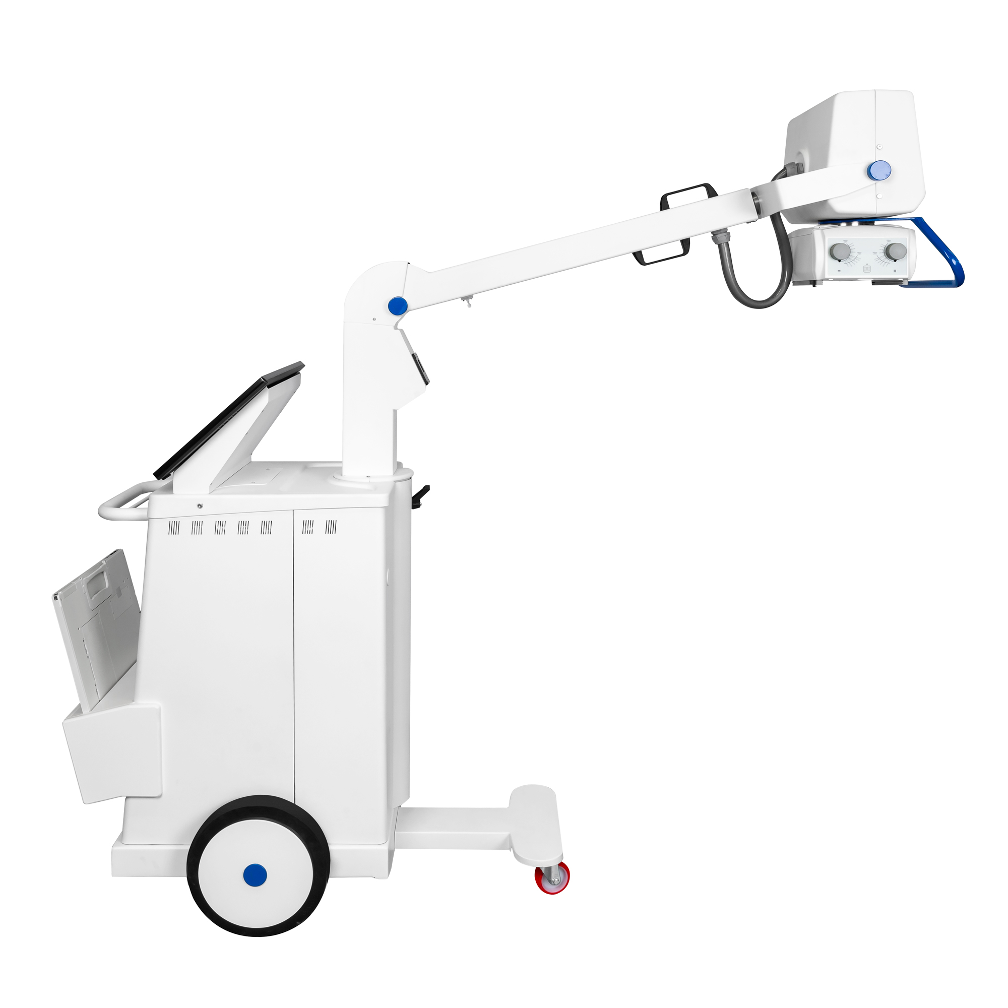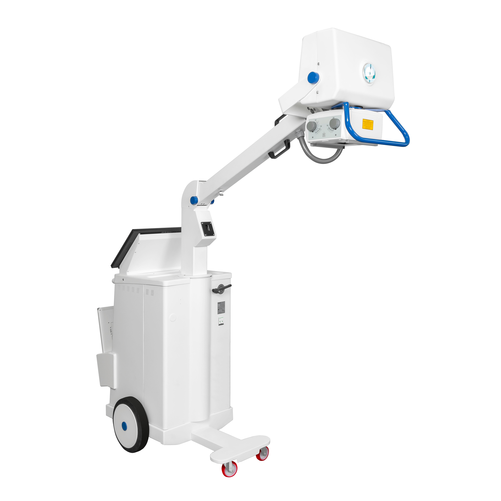 Aparat mobilny rtg posiada w standardzie filtry pediatryczne. Wygodna rękojeść aparatu rtg pozwala na szybkie manewrowanie, puszczanie rękojeści powoduje uruchomienie automatycznego hamulca, który ustala aparat rtg w nieruchomej pozycji.