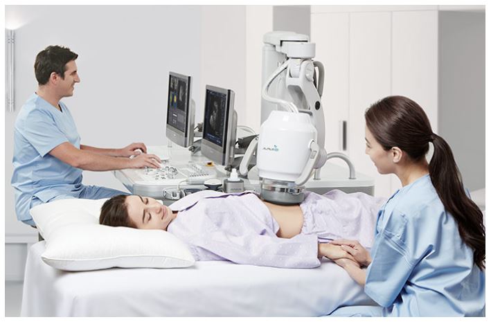 Alpinion HIFU ALPIUS 900 to najwyższej klasy urządzenie do leczenia mięśniaków macicy działające pod kontrolą USG, które wykorzystuje wiązkę ultradźwiękowa wysokiej intensywności HIFU (FUS).