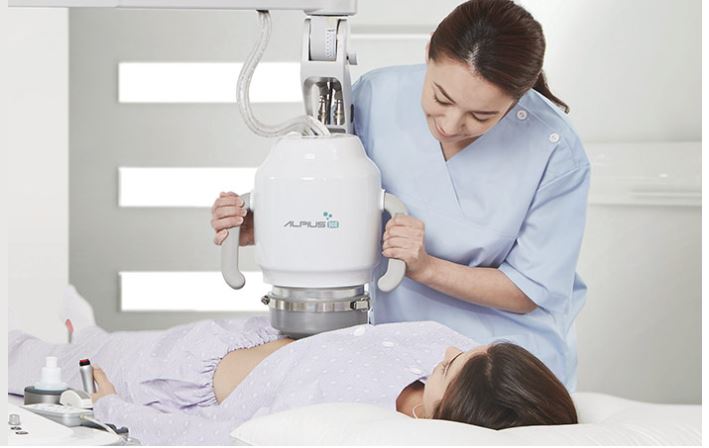 HIFU Alpinion ALPIUS 900 to innowacyjna, niespotykana dotąd metoda leczeniu mięśniaków macicy z wykorzystanie technologii HIFU pod kontrola USG. System gwarantuje bezpieczne i szybkie leczenie mięśniaków bez ryzyka związanego ze standardowym zabiegiem chirurgicznym. ALPIUS 900 nie wymaga instalacji rezonansu magnetycznego do przeprowadzenia terapii.